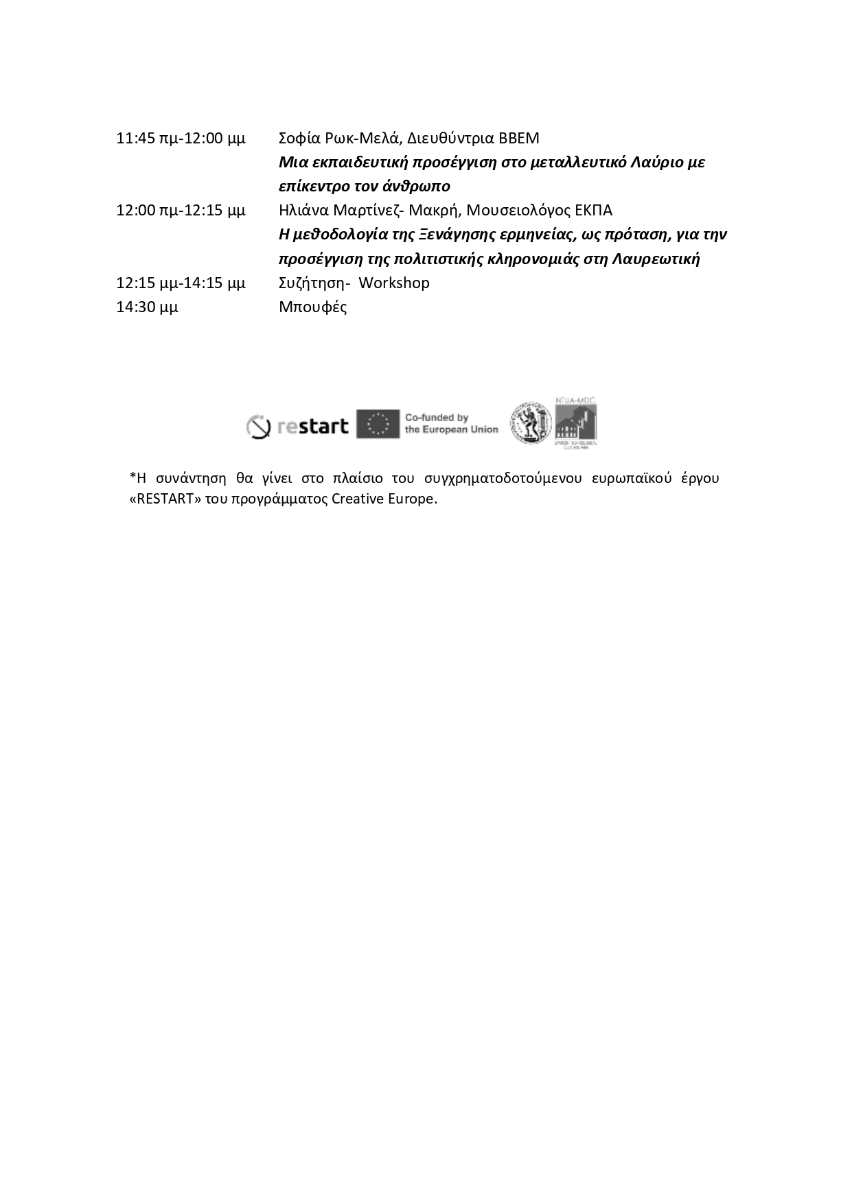Στο πλαίσιο του Ευρωπαϊκού έργου Creative Europe-Restart το Τεχνολογικό Πολιτιστικό Πάρκο Λαυρίου (